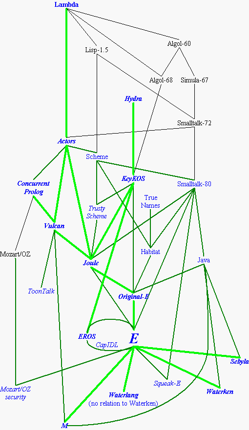 arcs below E lead to systems that were derived from E in their original