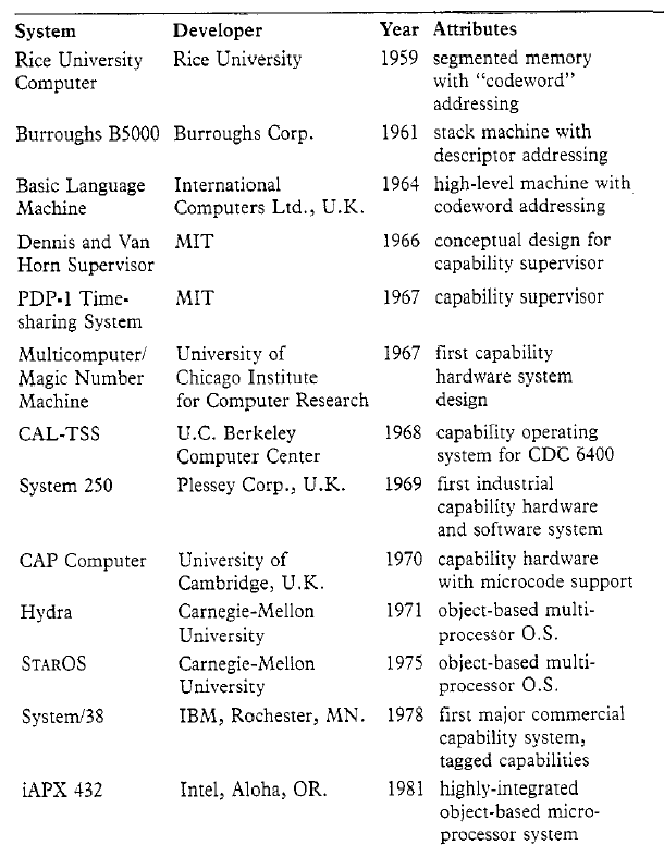 absent from [Levy84]. All dates are approximate -- these systems were